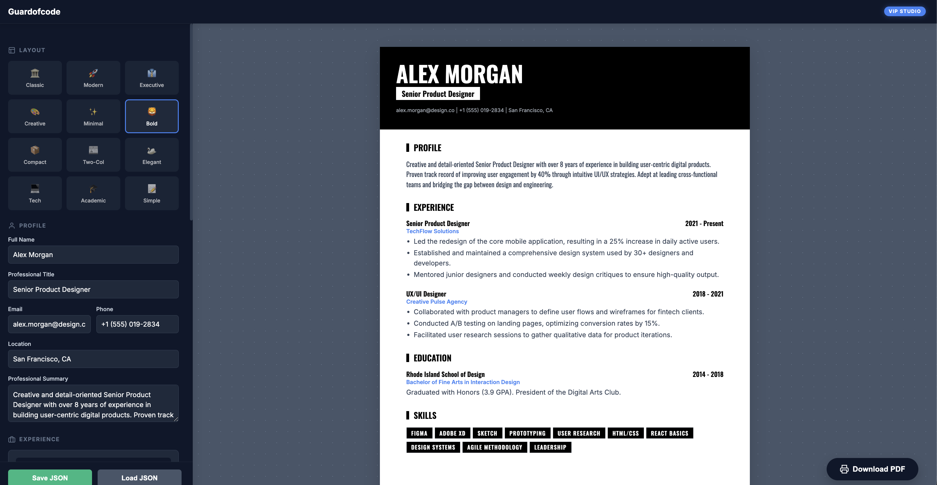 Stop struggling with Word documents. Our professional script generates ATS-friendly, beautifully designed PDF resumes instantly. One-time purchase, yours forever.
